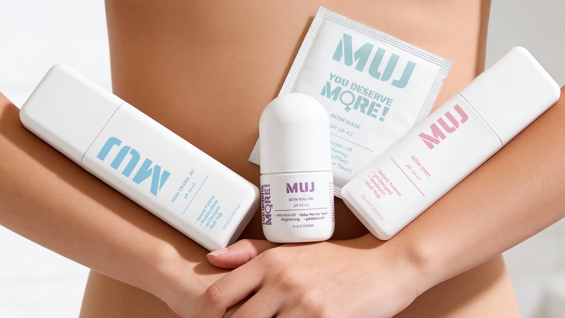 MUJ, intim bakımı bir utanç konusu olmaktan çıkarıp bilinçli bir öz bakım ritüeline dönüştürür. Kadın bedenine saygılı, pH dengeli ve günlük kullanıma uygun ürünleriyle, bakımın en özel alanına sade ve güvenilir çözümler sunar. Bilimle geliştirilen ve özenle formüle edilen her ürün, kadın bedeninin hassas dengesini korumayı ve kadınların bedenleriyle kurduğu ilişkiyi güçlendirmeyi amaçlar. MUJ, bakımı bir zorunluluk değil, kendin için bilinçle seçtiğin bir ritüel haline getirir.